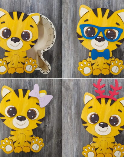 Caixa de Tigre Cortada a Laser - Vetor Grátis