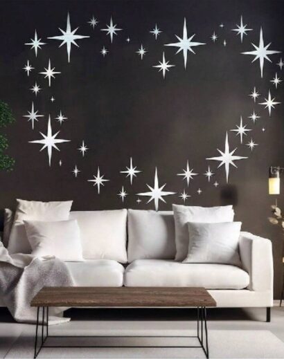 Adesivo de parede espelhado 3D em acrílico com design de estrela cortada a laser para casa