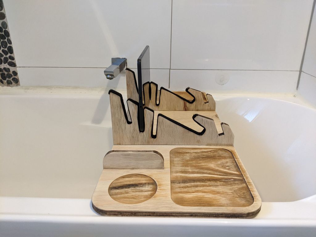 Ele é cortado a laser em compensado de 12 mm e foi projetado para acomodar uma variedade de dispositivos.
