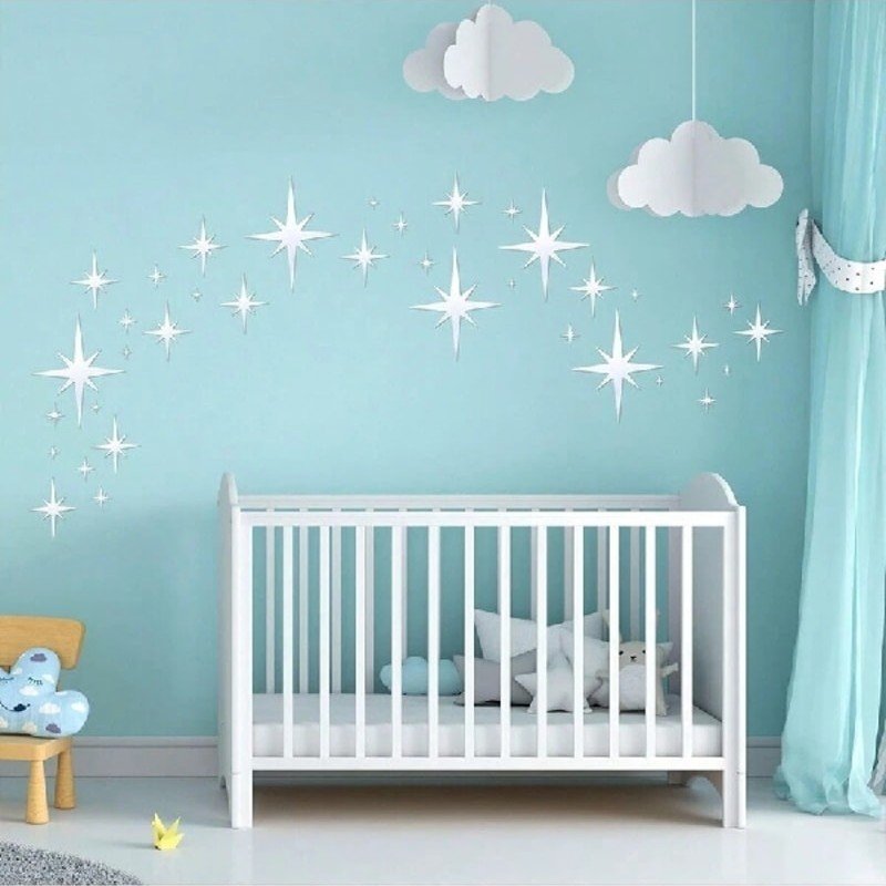 Adesivo de parede espelhado 3D em acrílico com design de estrela cortada a laser para casa